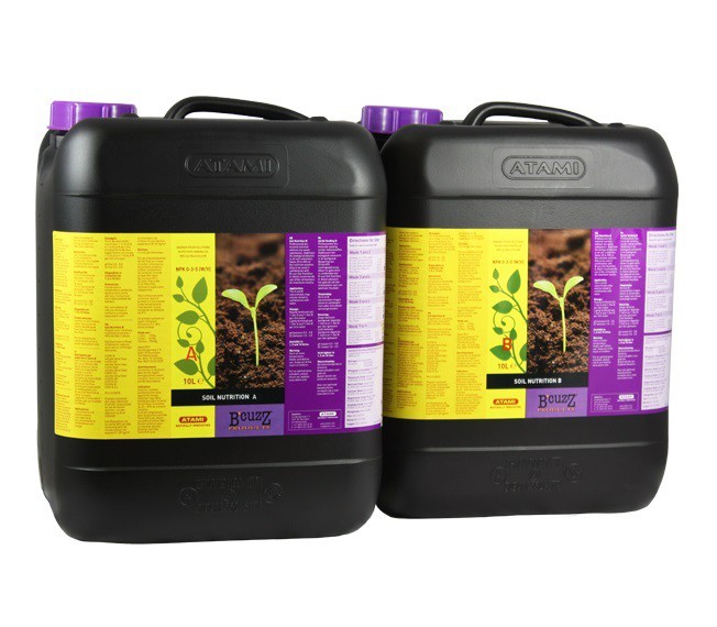 Die (junge) Pflanze benötigt wichtige Nährstoffe. In dieser Hinsicht bleibt unser B`cuzz Soil A+B Dünger weiterhin die Basis für schöne Anbauerfolge beim Anbau im Boden oder Substrat. Professioneller biomineralischer Dünger, der einen stabilen und biologisch ausgeglichenen Substrat garantiert. Bodendünger A + B enthält fast alle notwendigen Nährstoffe für die gesamte Wachstumsperiode. Bodendünger A + B eignet sich sowohl für den Innen- als auch für den Außenanbau.VerwendungDieser Dünger wird verwendet, indem B`cuzz Bodendünger A & B gleichzeitig in Wasser gelöst und gemischt wird. Verwenden Sie Wasser bei Raumtemperatur (21°C), um bessere Ergebnisse zu erzielen.Anbau-TippNeben dem Bodendünger A & B empfehlen wir die Verwendung von Biostimulatoren.QualitätsgarantieStimulatoren und Flüssignahrung von Atami sind unter einem Schraubverschluss in einer lichtdurchlässigen Verpackung versiegelt, um die Qualität zu erhalten.Erhältliche Größen:- 1 Liter- 5 Liter- 10 LiterDosierung:Stark gedüngte Topferde / Boden:täglich 1-3 ml A und 1-3 ml B pro Liter Wasser.Leicht gedüngte Topferde / Boden:täglich 1-5 ml A und 1-5 ml B pro Liter Wasser.NPK:Bodenernährung A: 4-0-4 (w/v)Bodenernährung B: 1-3-5(w/v)Bodenernährung A:3-0-3(w/w)Bodenernährung B:0-2-4 (w/w)