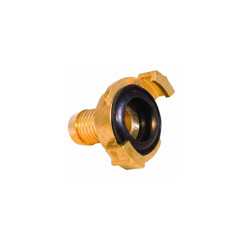 Robuste Messing-Schnellkupplung für 1″ Gartenschläuche – ideal für Bewässerungssysteme.