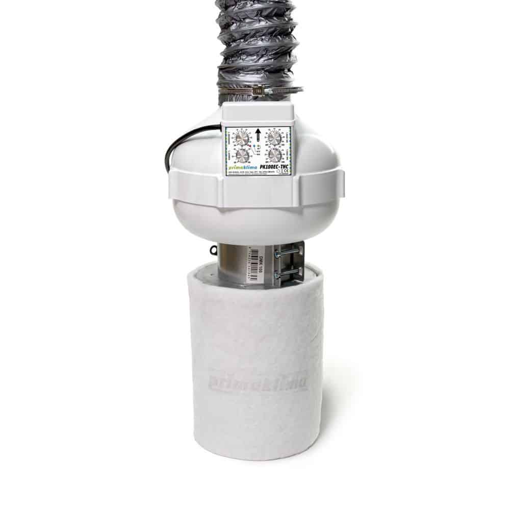 Das Prima Klima Ventilation Set PKVS PK100EC-THC ist ein komplettes Abluftsystem mit EC-Ventilator sowie Temperatur- und Feuchtigkeitsregelung. Geeignet für den Einsatz in Growboxen und geschlossenen Anbauräumen.