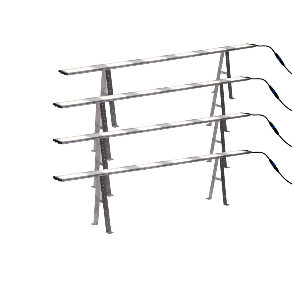 Undercanopy-LED-Set mit vier SANlight STIXX 6-150 zur flächigen Ausleuchtung des unteren Pflanzenbereichs auf 150×300 cm.