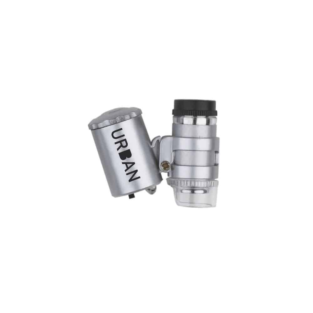 Das Urban Taschenmikroskop 60x mit LED-UV-Beleuchtung ist ein mobiles optisches Prüfgerät zur Vergrößerung von kleinen Oberflächenstrukturen.